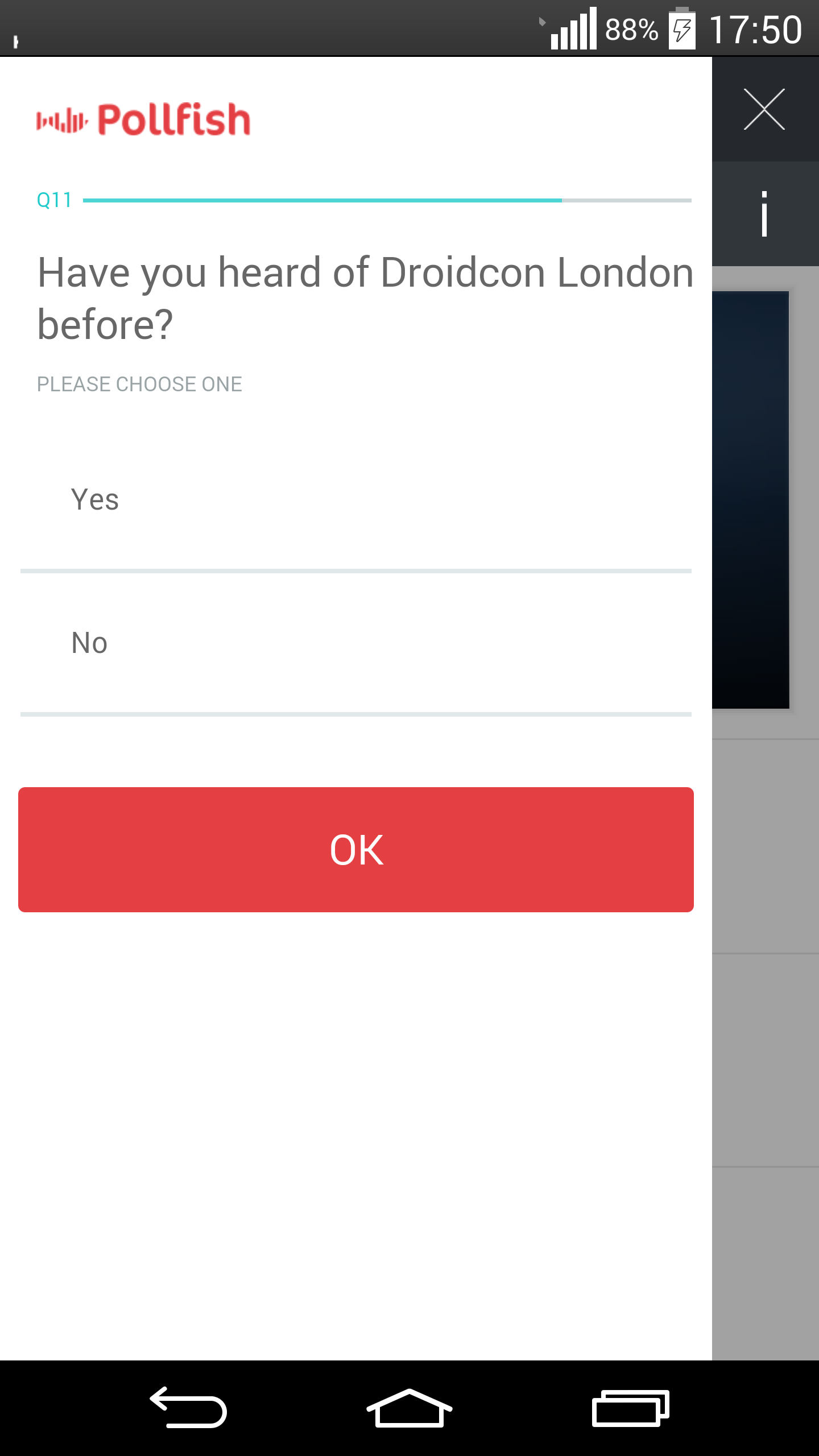Users are eligible for one survey per day in order to ensure quality of the results and user experience. Therefore, once a survey is completed everything disappears from the UI of the app and user can continue with the flow of the app free of any ads or surveys. Moreover, when no survey is available nothing is shown within the app, as surveys were never integrated in the app before.